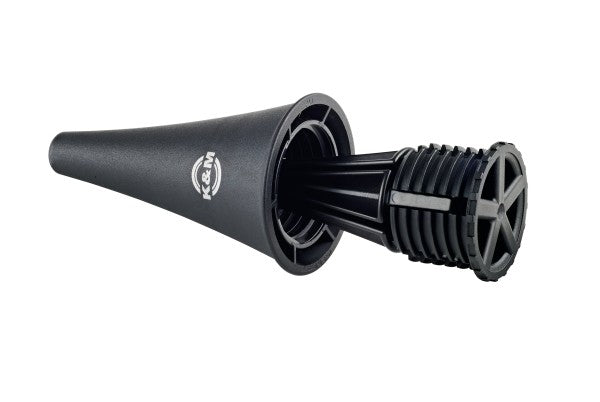 The "In-Bell" clarinet stand is extremely small and compact. 5 stable die-cast feet ensure excellent stability and sturdiness. Thanks to the patented and easy to operate screw-in system the feet can be conveniently stored in the peg. The short peg completely fits into the bell of the clarinet making it easy for transport in all common instrument cases.