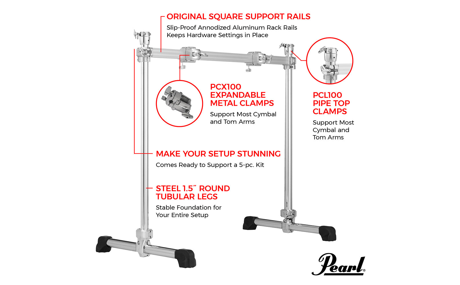 The Icon Single straight rack is also compatible with Pearl's expanded library of clamps and accessories, extending the mounting possibilities to every area of the rack for the progressively-minded player.