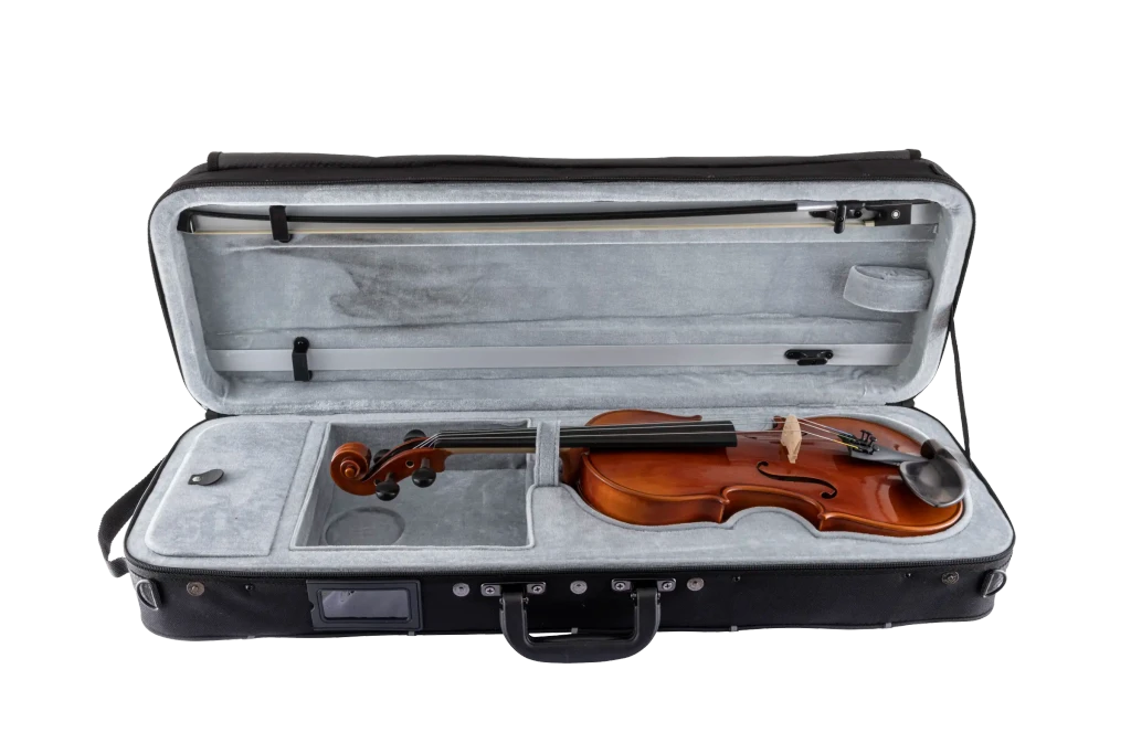 Scherl & Roth step-up violins are hand crafted with select solid spruce tops, flamed maple back and sides and hand-applied spirit varnish. Each instrument is hand adjusted in our shop and set-up with Dominant strings, ebony fingerboard and pegs, select French maple bridge and a composite tailpiece.
