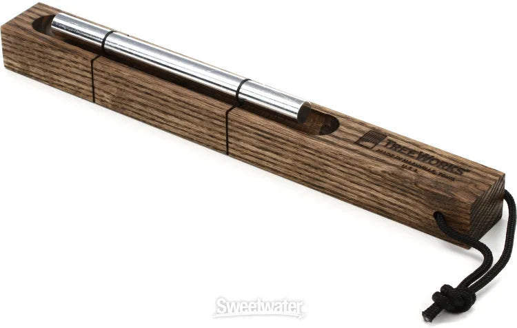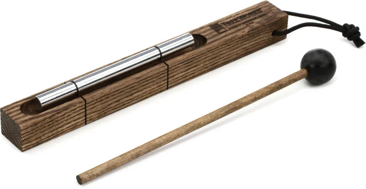 The Tre410 Single-note Meditation Energy Chime from TreeWorks is a beautifully designed single-note chime that is great for meditation and adding sonic ambiance to a musical piece — perfect for percussionists of all stripes. Made from an exclusive aluminum/titanium alloy that is heat-treated for eight hours, the Tre410 produces a clear, resonant long-lasting tone that is truly relaxing and a delight to hear. The wooden frame for the Tre410 is made from a gorgeous Tennessee hardwood that is hand-rubbed in oil for a deep, dark color that lasts. A hardwood mallet and corded handle make for a comfortable, precise strike over and over. Percussionists here at Sweetwater love this chime for its amazing tone and craftsmanship.