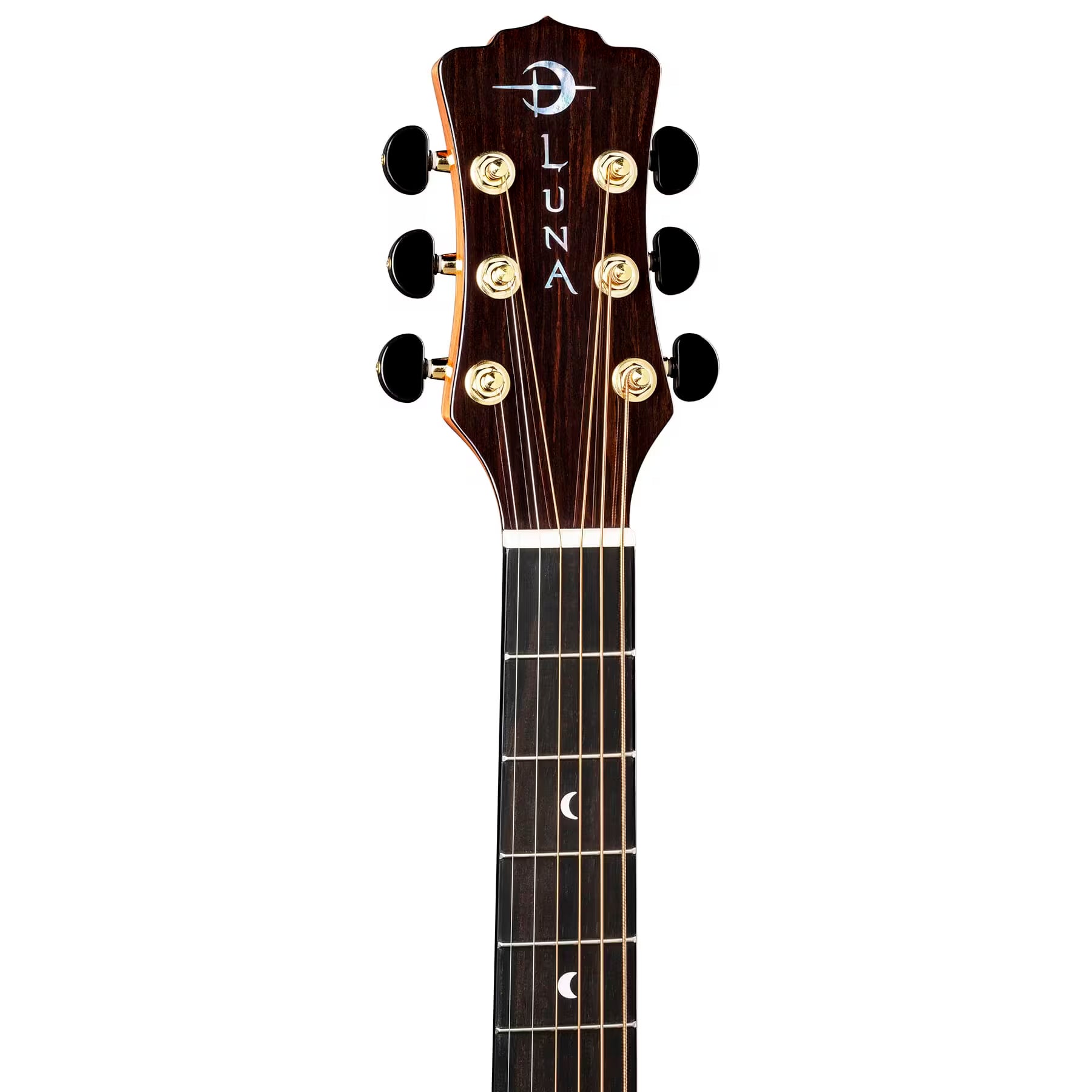 Touting superb craftsmanship and rich, warm sound, Luna acoustics have long been sought after for their remarkable aesthetics. The Vista series once again shows Luna blending the world of fine art and the art of advanced acoustic guitar building. The Vista Series Wolf model showcases a skillfully crafted top, made from attractive tone-woods that bring its unique panoramic image to life. Handmade from a combination that includes Padauk, Bird’s Eye Maple, Koa, and Flame Maple, each guitar is a completely unique work of art. The Vista Wolf features a gloss finished, flamed maple bound, Grand Concert body with choice Koa back and sides for enhanced tone and projection. Precision fitted with a hand-shaped 25 scale Mahogany neck and capped with a smooth, Pearl Moon Phase inlaid Ebony fretboardthe Vista Wolfs feel, playability, and stand-alone acoustic sound are nothing short of inspirational. Once plugged in, the Vista Wolf takes off in yet another sonic direction. Owing to a Fishman Presys+ (PSY-201) preamp/tuner, the Vista Wolf offers clear, strong, natural acoustic sound on stageeven when going against dense instrumentation. Whether plugged-in or not, the Vista series incredibly full tone, pristine clarity, and unique visual presence make it the ideal instrument to make your musical statement. Harshell case included.