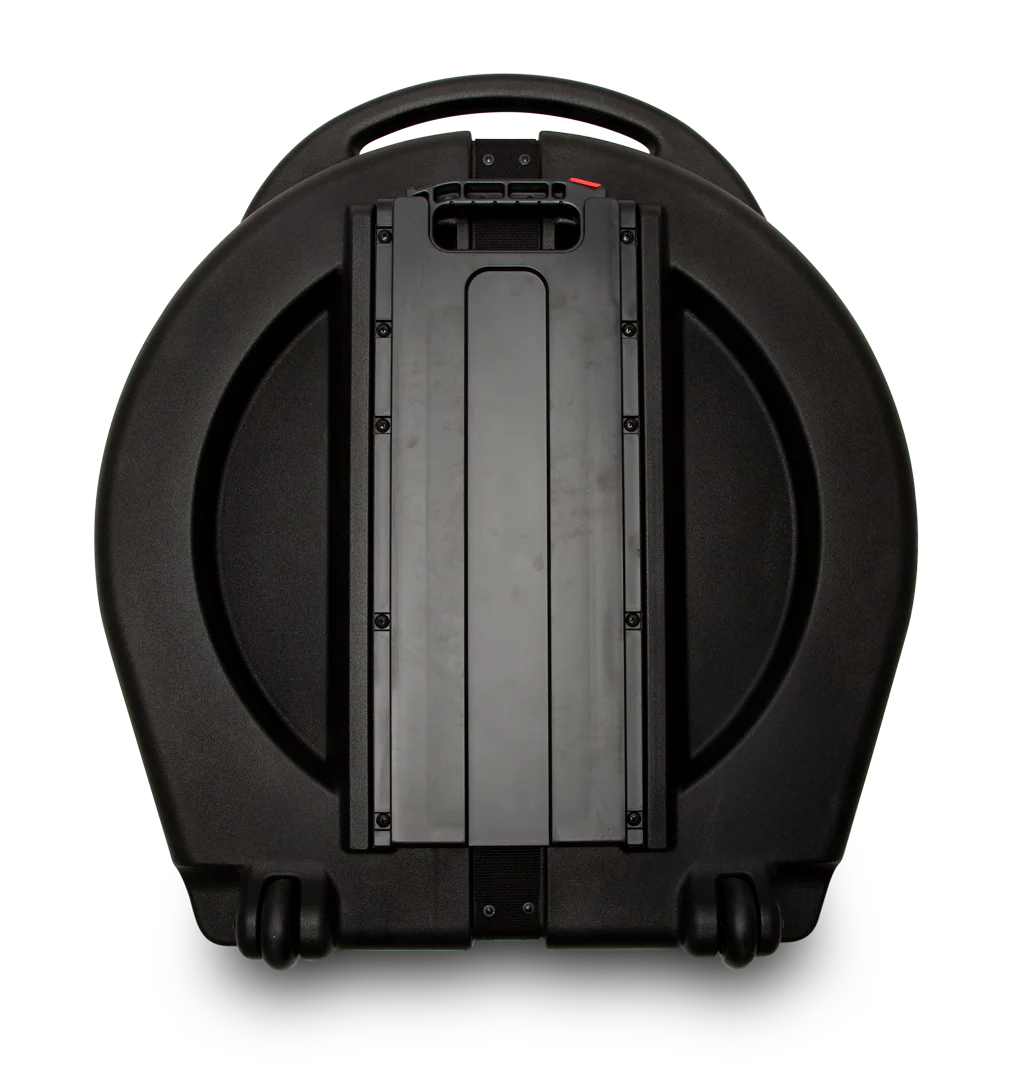 The Zildjian Rolling Cymbal Vault is the ultimate hard case for drummers that want protection and easy transport for their cymbals. This spacious case can hold 7 cymbals up to 24" in diameter, and includes four cymbal pads for premium protection and durability. Transporting is made easy with heavy duty in-line skate wheels, and a retractable, molded ergonomic handle. The sturdy, high-tension slide release buckle and heavy duty web straps ensure that the case stays securely closed. Protect and easily transport your cymbals with confidence with this heavy-duty rolling vault.